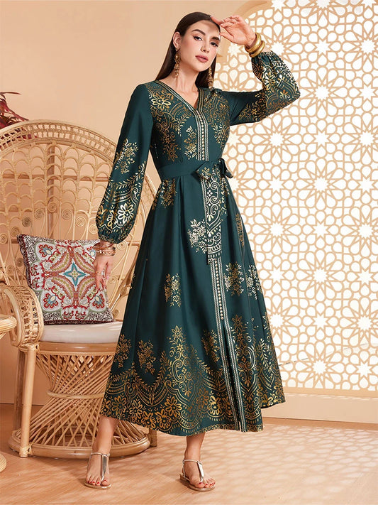 MH057 Elegant Lantern Sleeve Abaya Dress | Modest Maxi Kaftan for Eid & Evening Wear