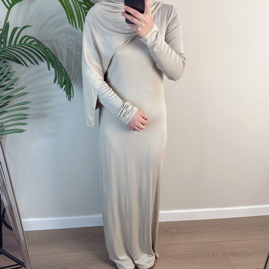 LM85 Modal Cotton Abaya Dress — Plain Solid Long Sleeve Maxi, Hijab-Friendly, Optional Inner/Base Dress (Scarf Not Included)