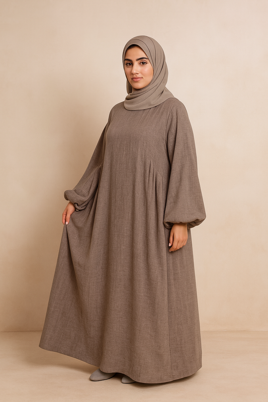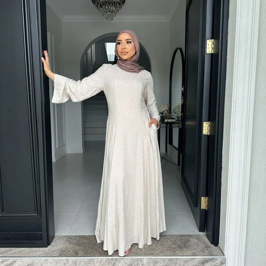 MH36 Tie-Back Linen Cotton Abaya – Slim Fit, Size-Up Comfort | Modest Eid Dress