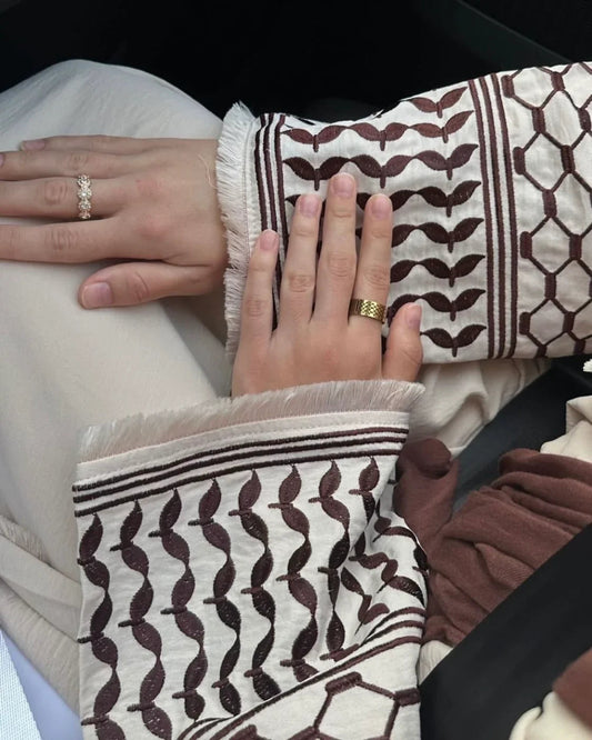 MH16 Keffiyeh Kimono Abaya – Belted Robe with Tassels (Cardigan + Inner)