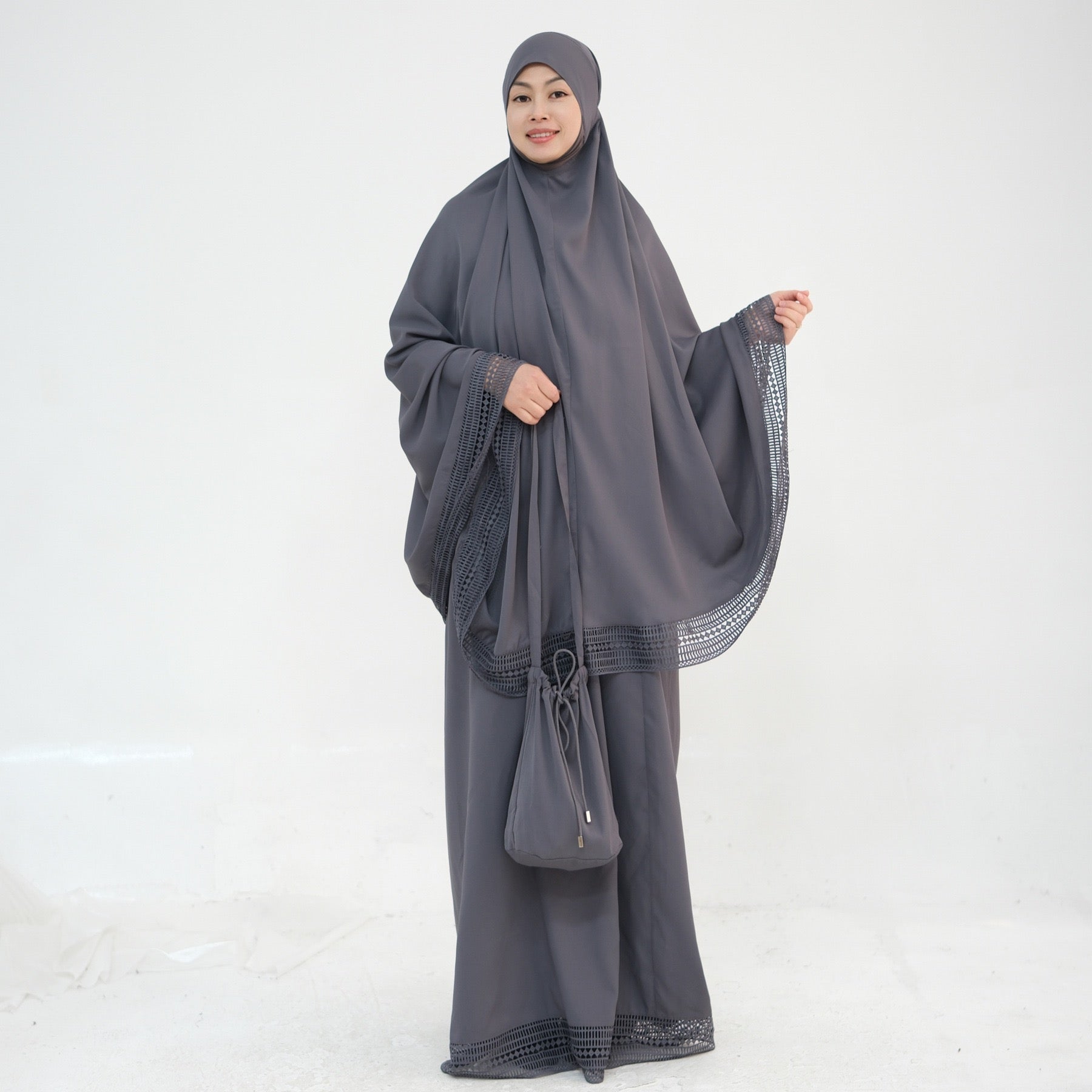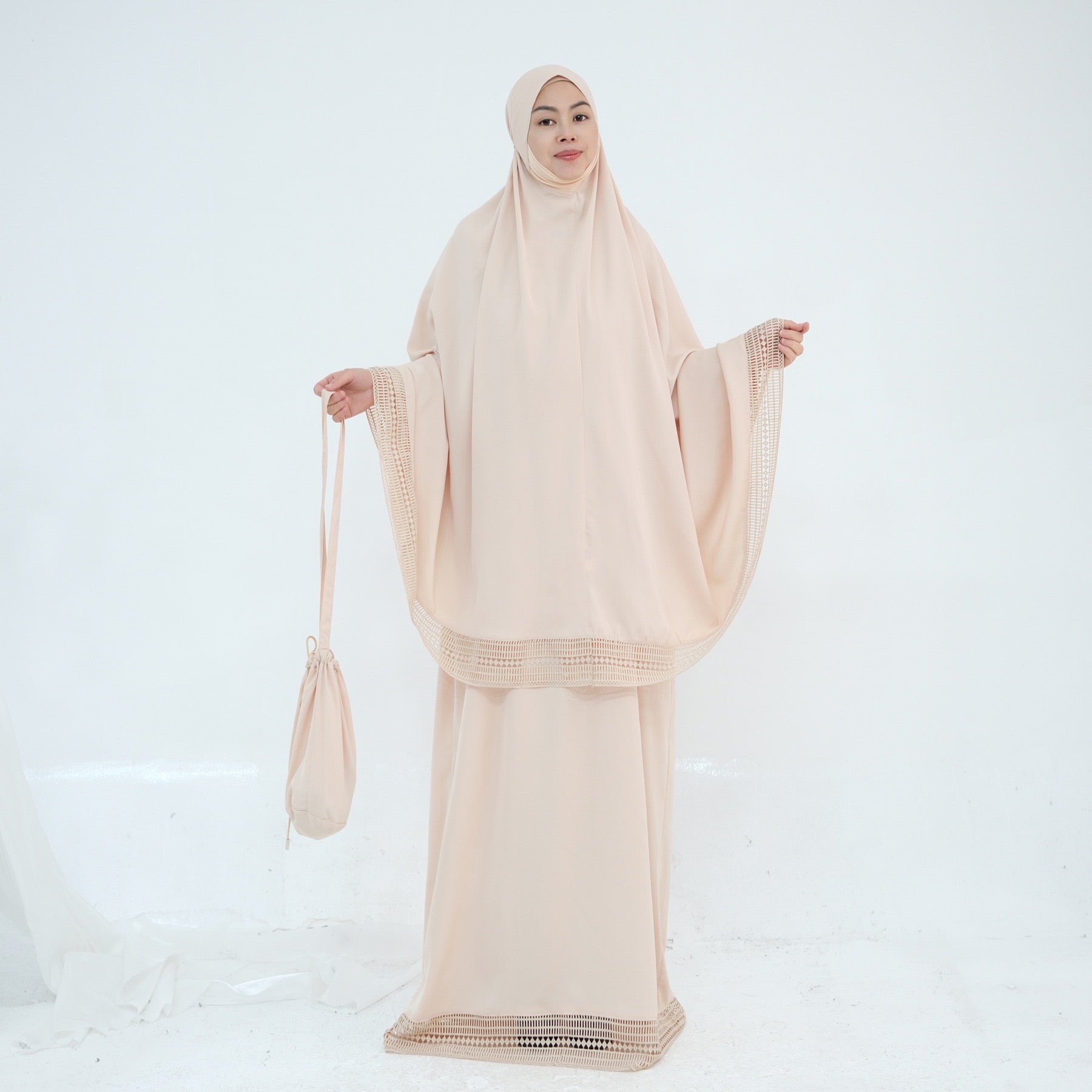 MH91 Khimar Prayer Set – 4-Piece Modest Outfit with Lace Trim & Drawstring Bag