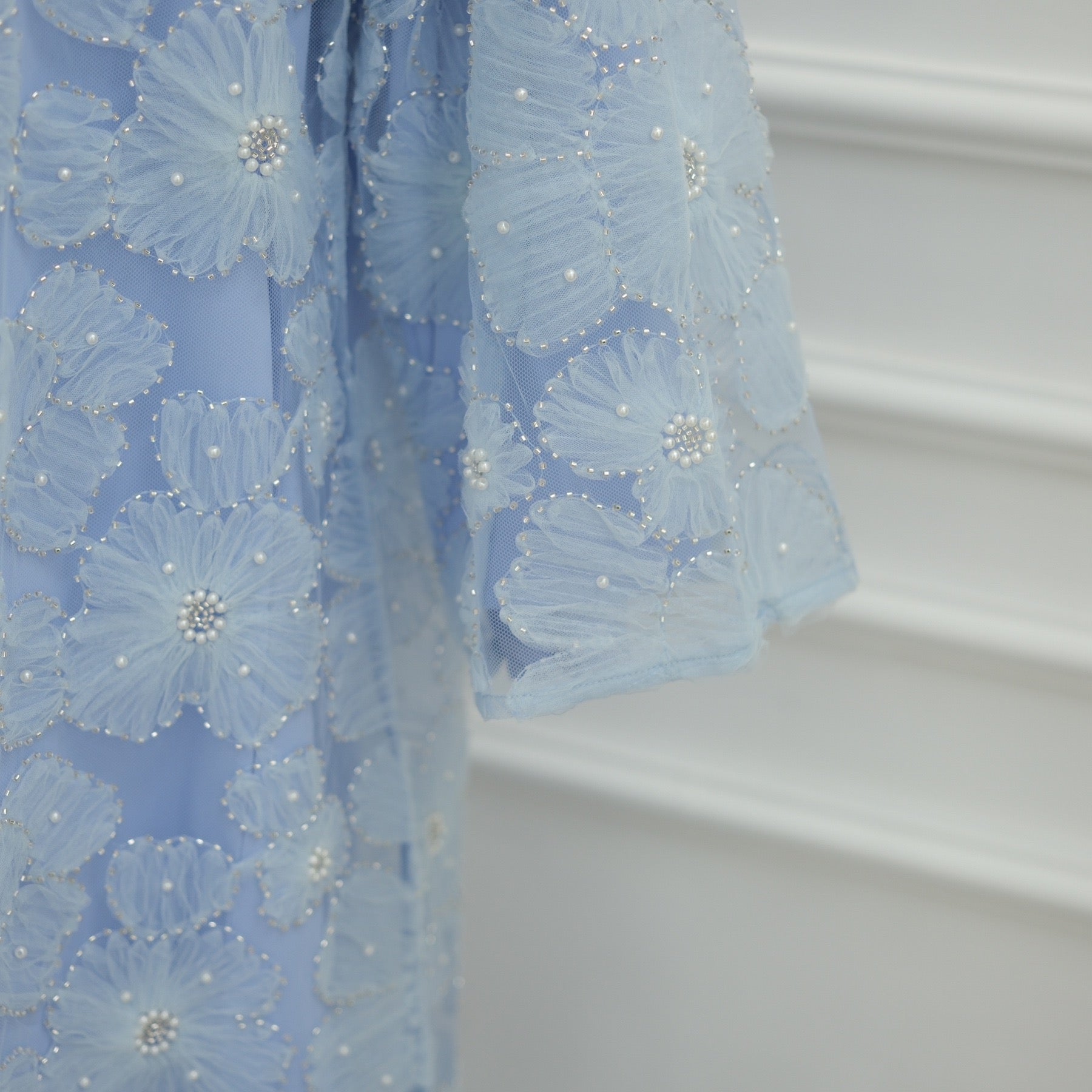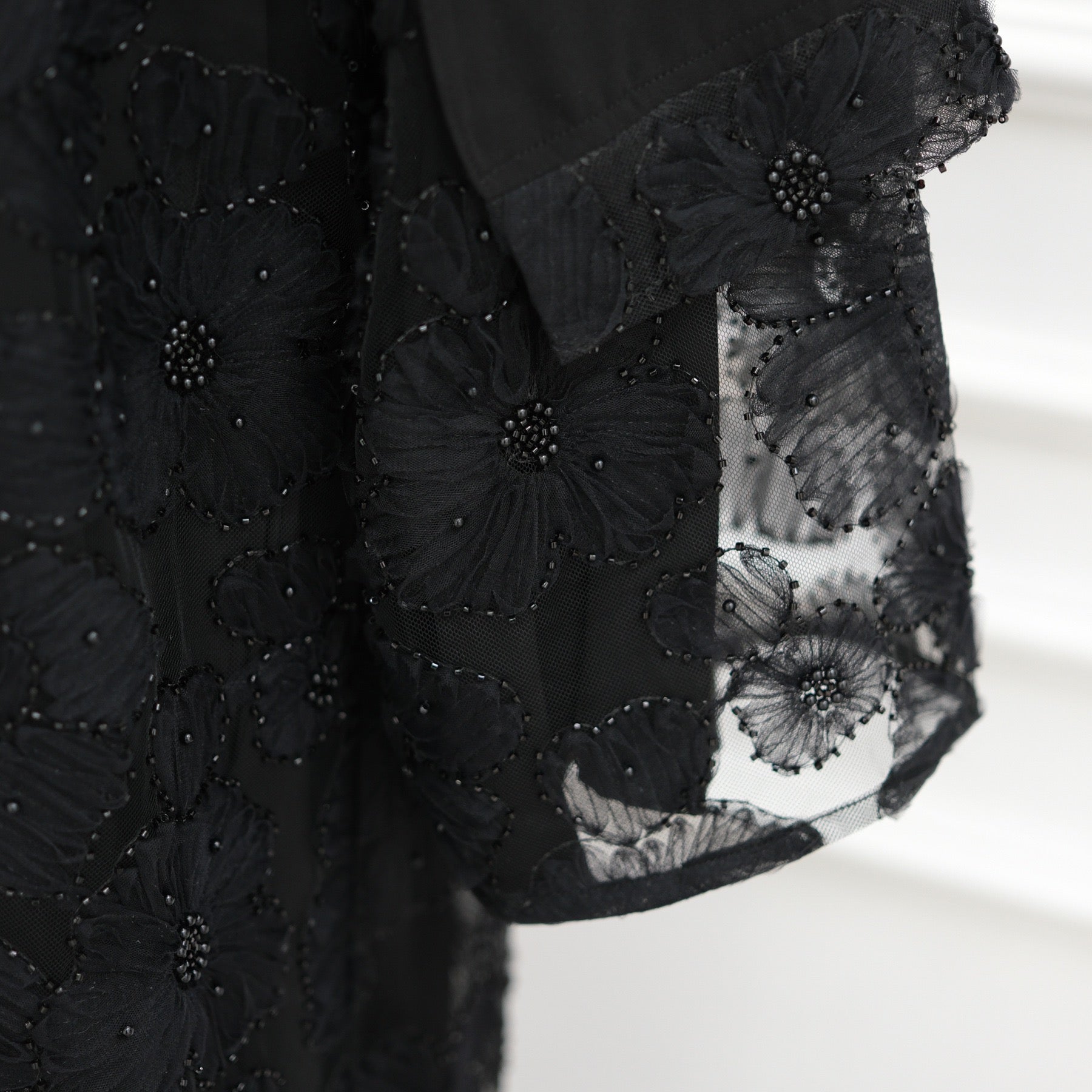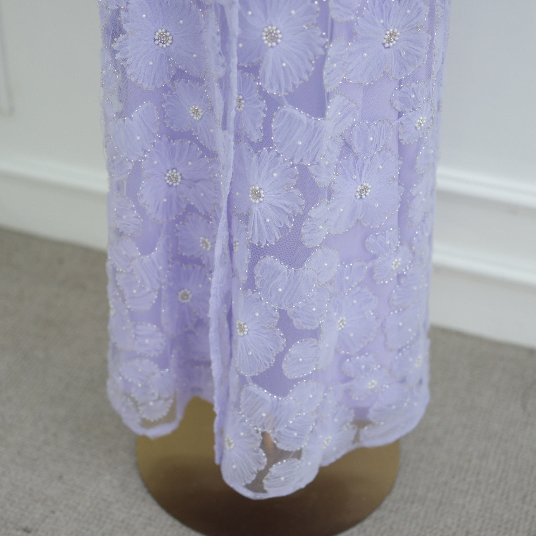 - Delicate floral embroidered lace with hand-set beading for a refined, luminous finish.