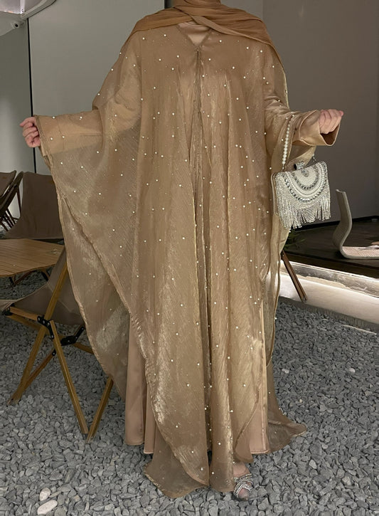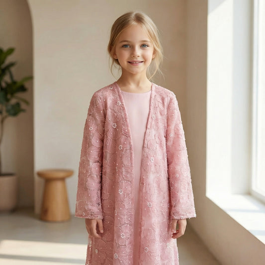 MH90 Beaded Lace Abaya Set – Embroidered Open Abaya, Optional Hijab & Inner Dress