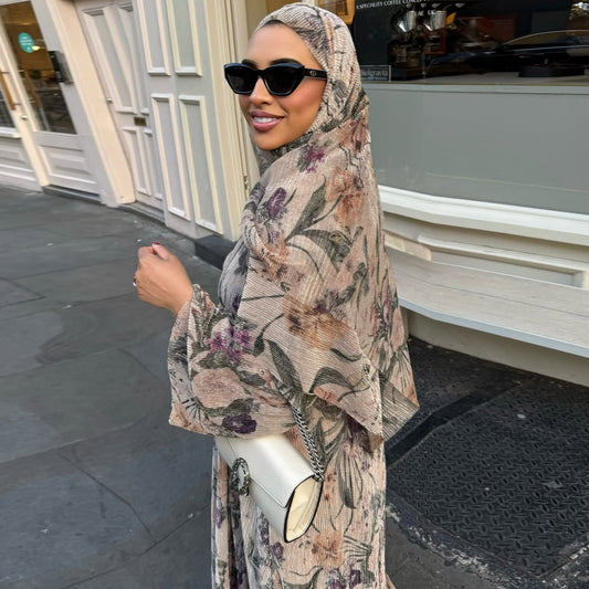 MH121 | Printed Floral Open Abaya Cardigan | Modest Kimono Robe for Women