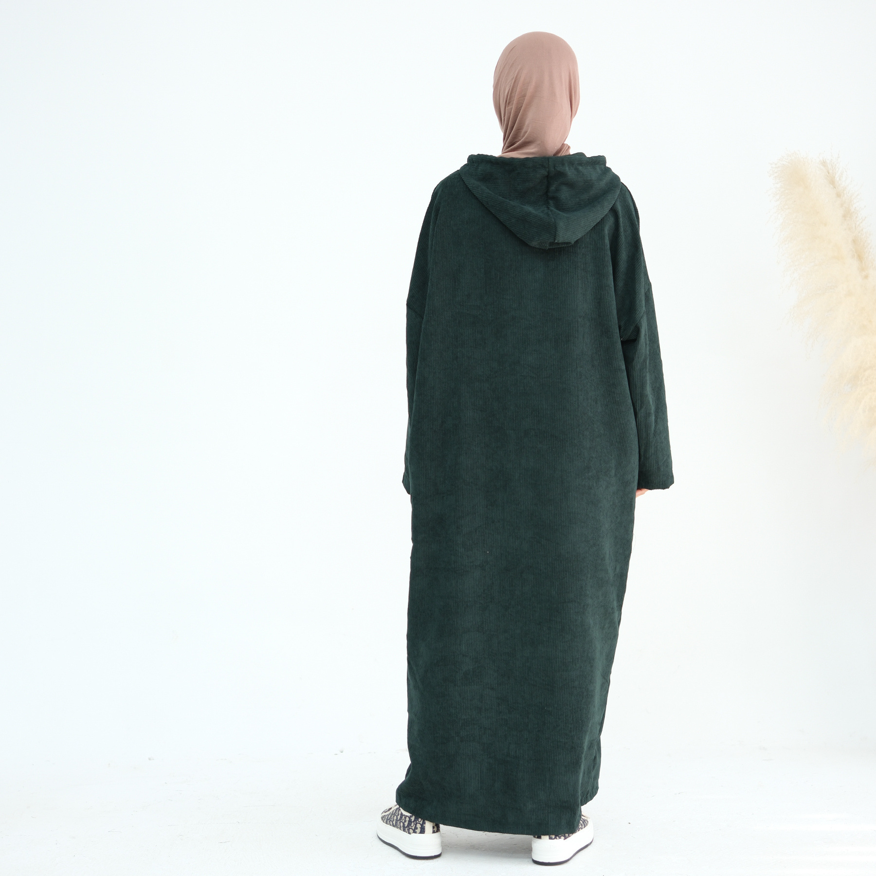 MH95 Corduroy Hooded Abaya with Pockets – Cozy Winter Comfort