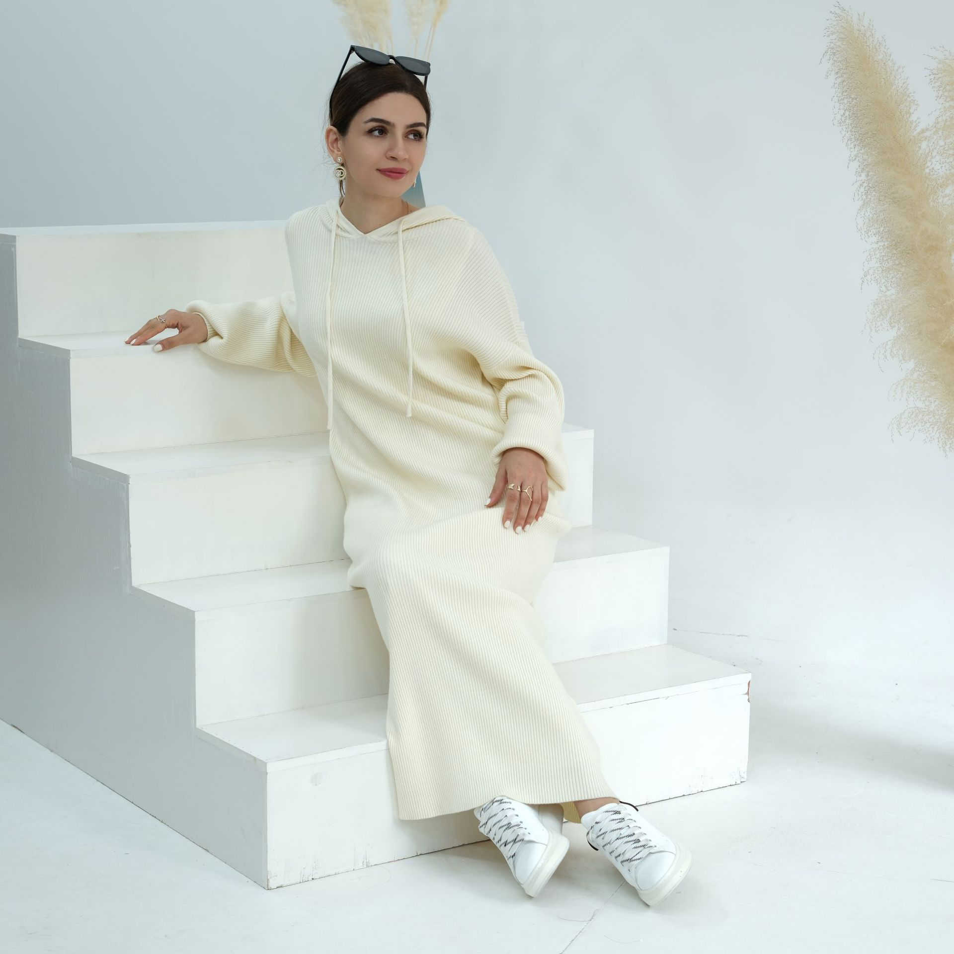 MH79 Hooded Abaya for Women – Thick-Knit Oversized Sweater Dress, Long Sleeve Modest Islamic Dress