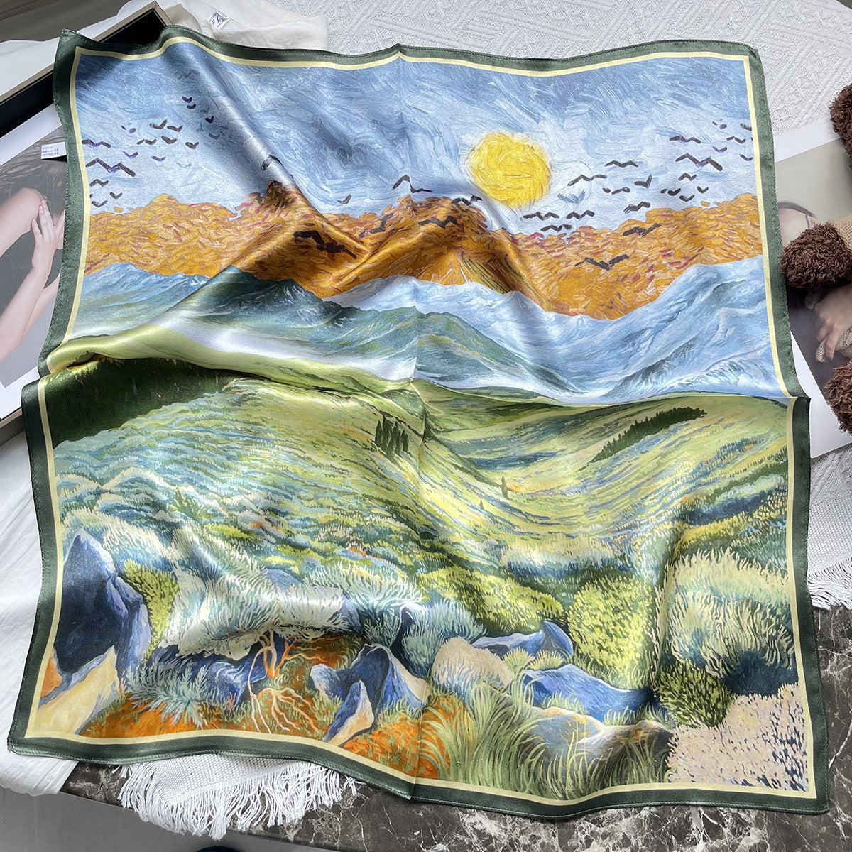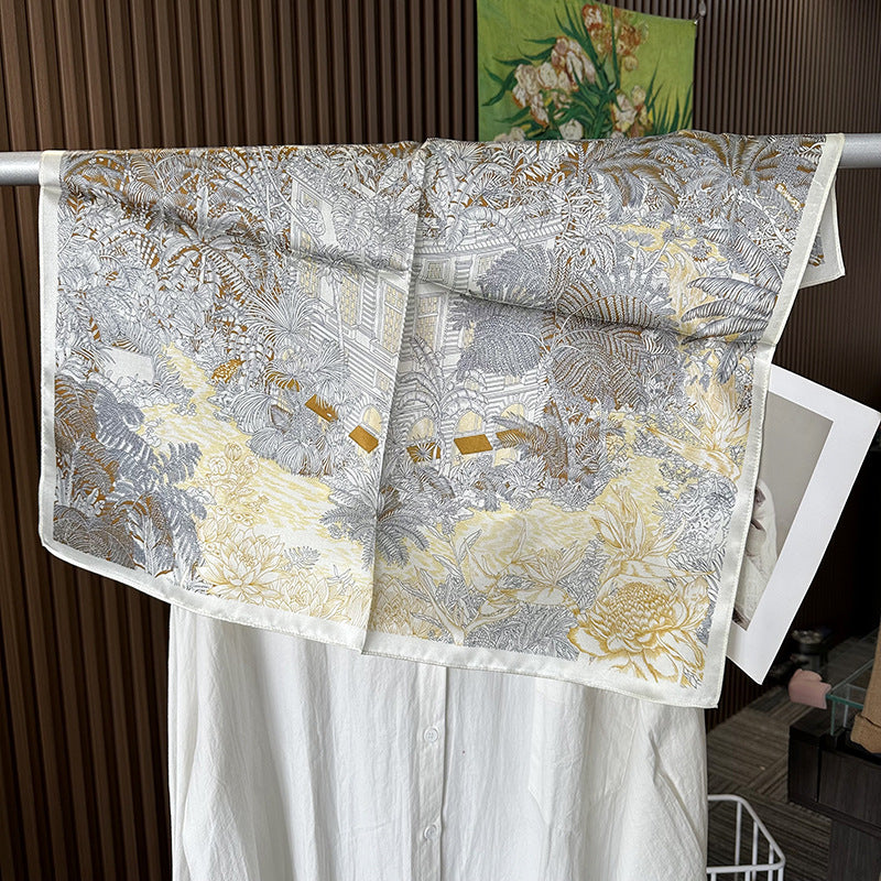 The perfect spring essential – this luxurious silk scarf beautifully combines elegance, sun protection, and versatility for the modern woman.