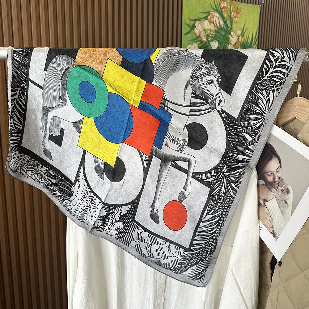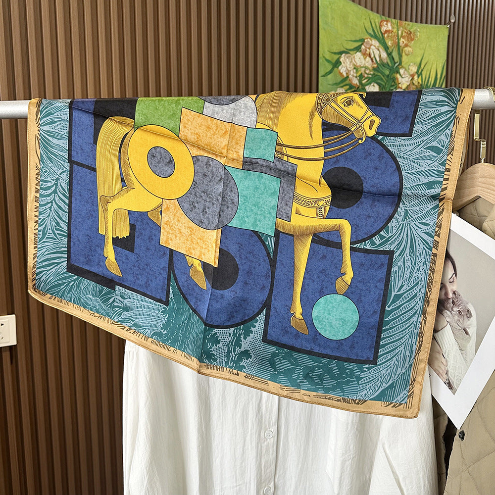 MH114 Silk Scarf Women Spring - Striped Mulberry Square UV Protection 2