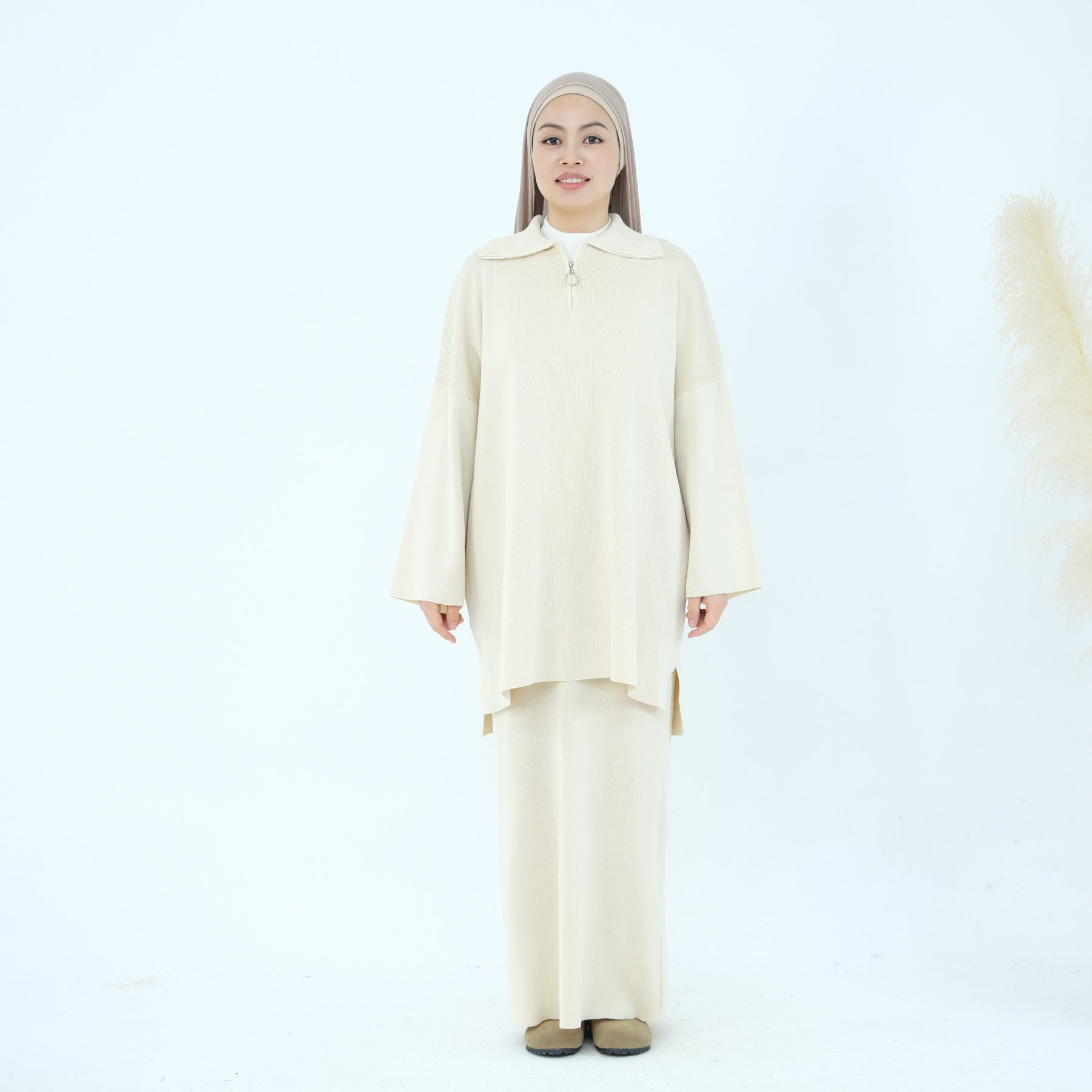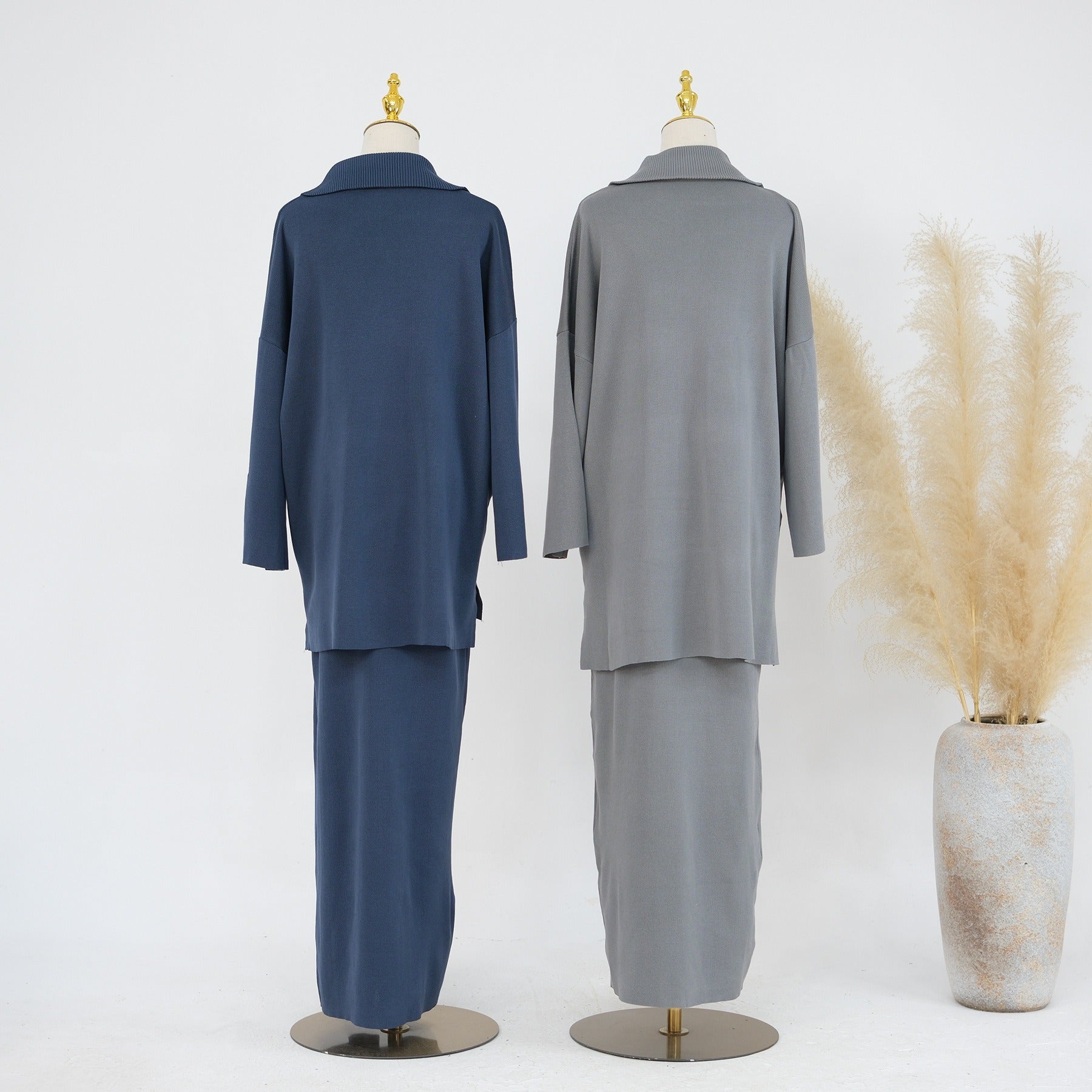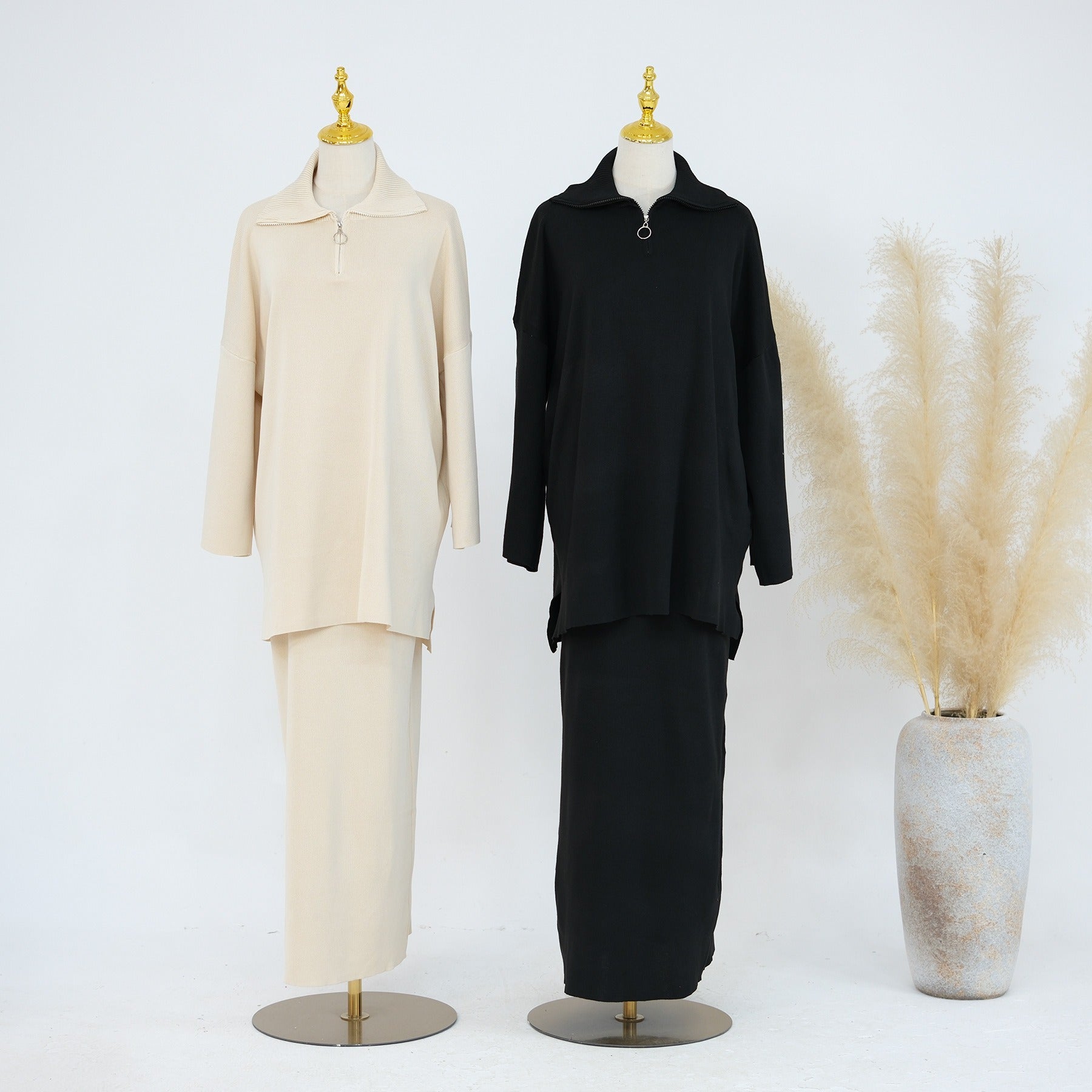 Elevate your autumn/winter modest wardrobe with this thick knit two-piece set – the perfect combination of warmth, comfort, and effortless style!
